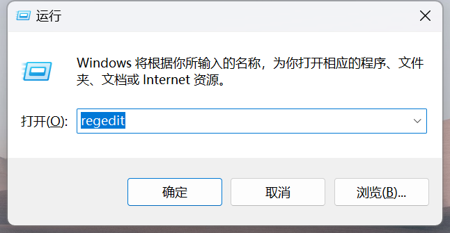 1、win+R 键 打开运行,输入regedit