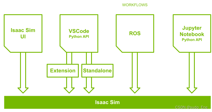 Omniverse Isaac Sim 使用英伟达™ Omniverse™ Kit SDK,这是一个用于构建原生 Omniverse 应用程序和微服务的工具包。Omniverse Kit通过一系列轻量级插件提供了多种功能。插件采用C语言接口编写,以实现持久的API兼容性;不过,还提供了一个Python解释器,以方便用户编写脚本。