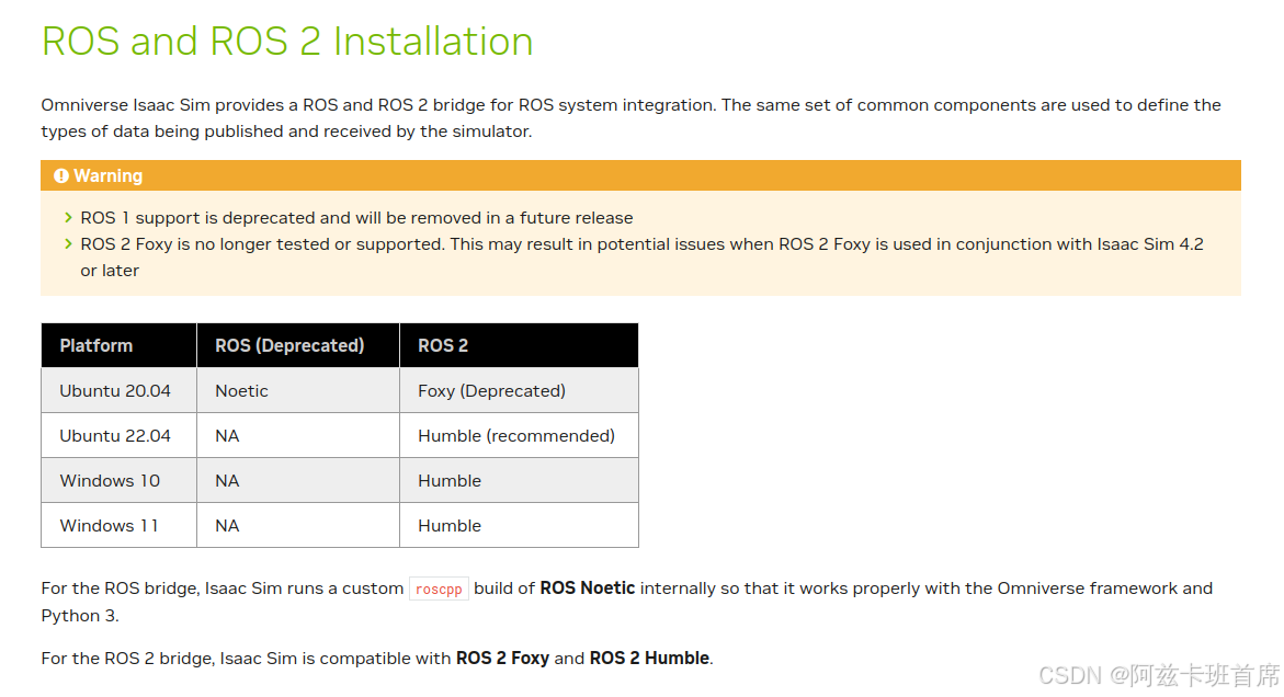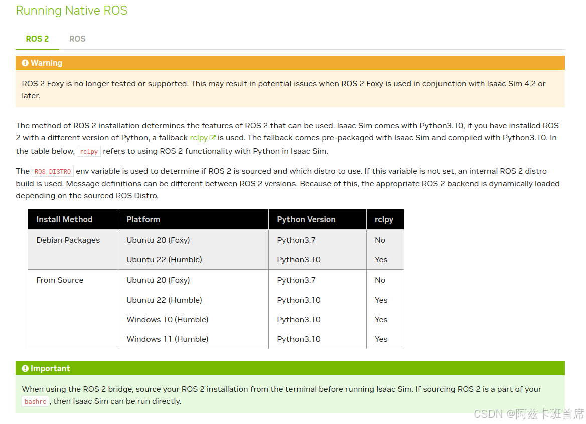 自2024.9.20起,Isaac Sim 4.2.0版本更新后,ROS有了具体的要求
