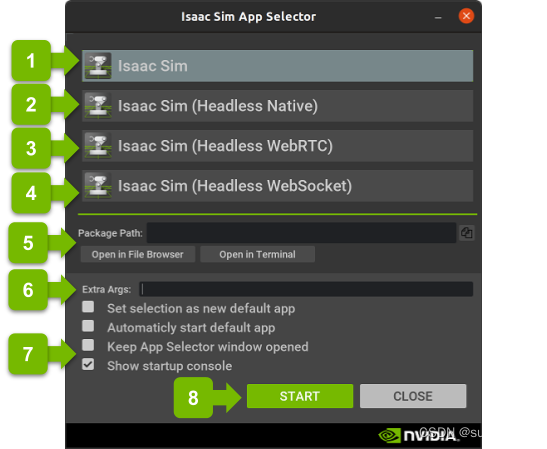 可以直接在 Isaac Sim 应用程序选择器的 Isaac Sim 根文件夹下打开终端