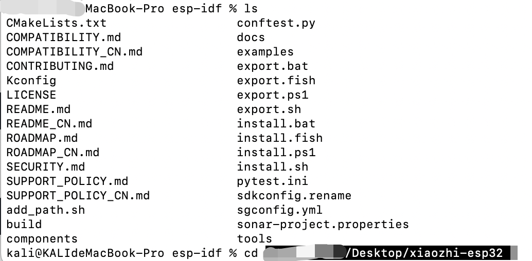 idf.py命令操作,进入esp-idf文件夹,再次执行export.sh脚本。