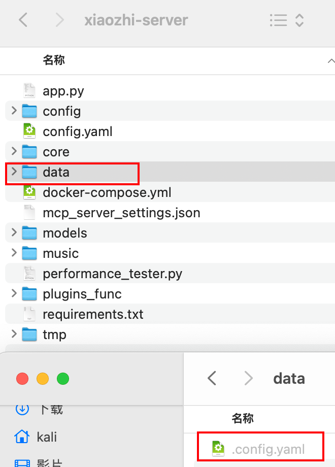 没有data文件夹需要创建并拷贝config.yaml,通过termial终端命令行修改为.config.yaml