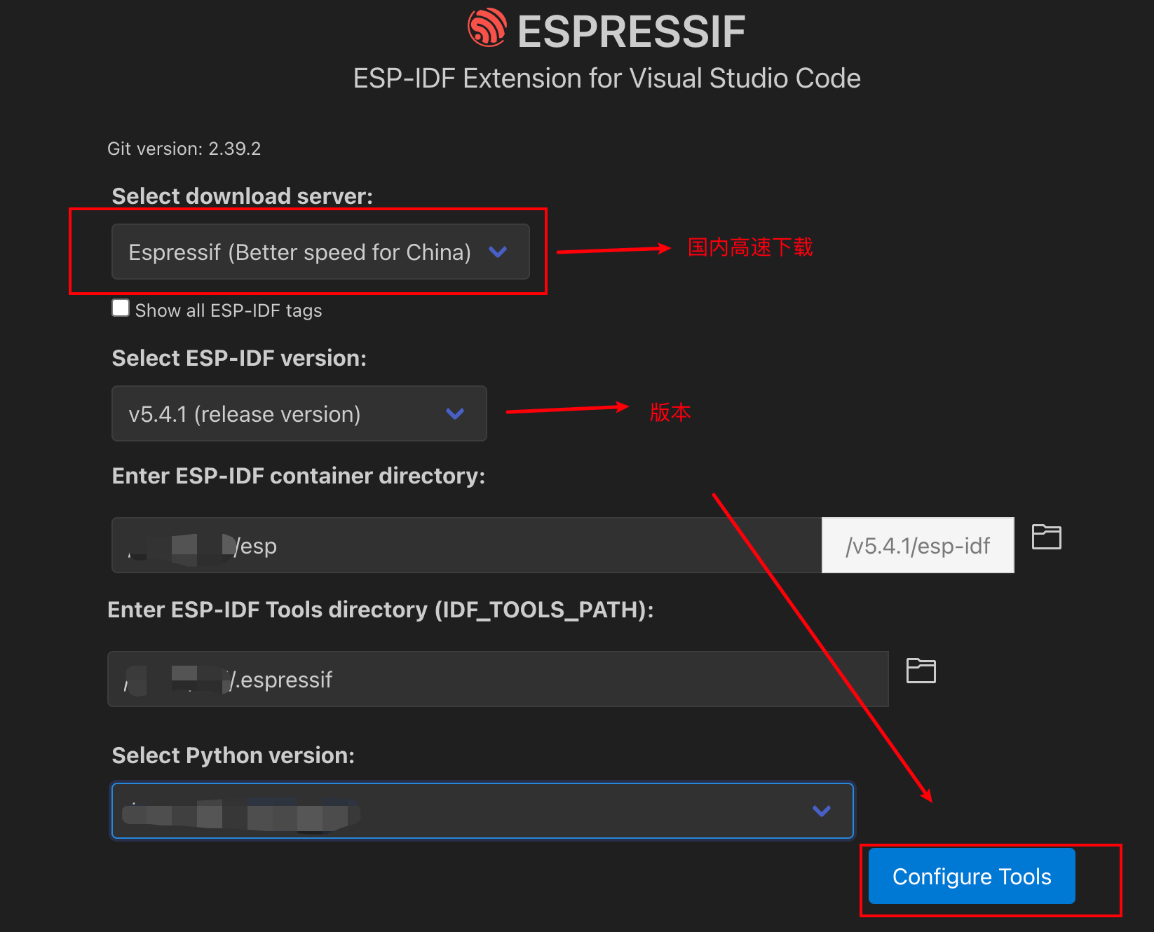 受网络的影响,需要先进行下载,下载过程尽量不要中止,下载包含所需要的ESP环境、编译工具等等。