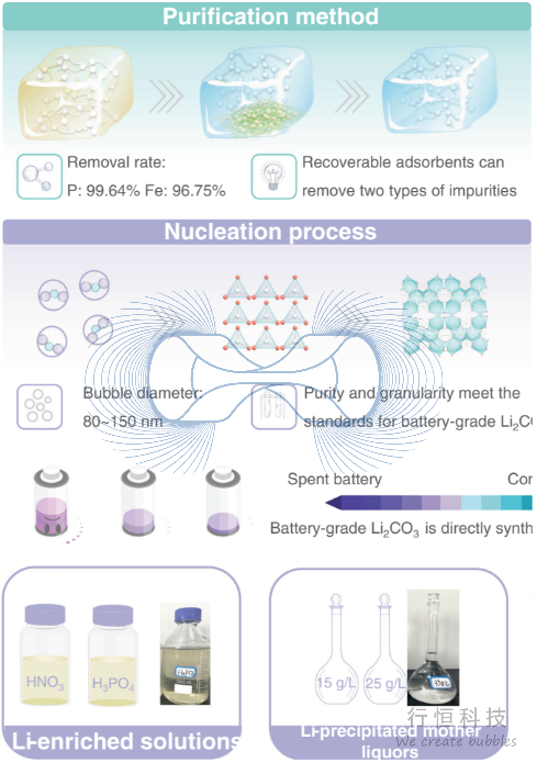 中国科学院广州能源研究所、中国科学技术大学联合团队在《Small》发表重要成果, 采用行恒科技的纳米气泡技术成功实现从富锂溶