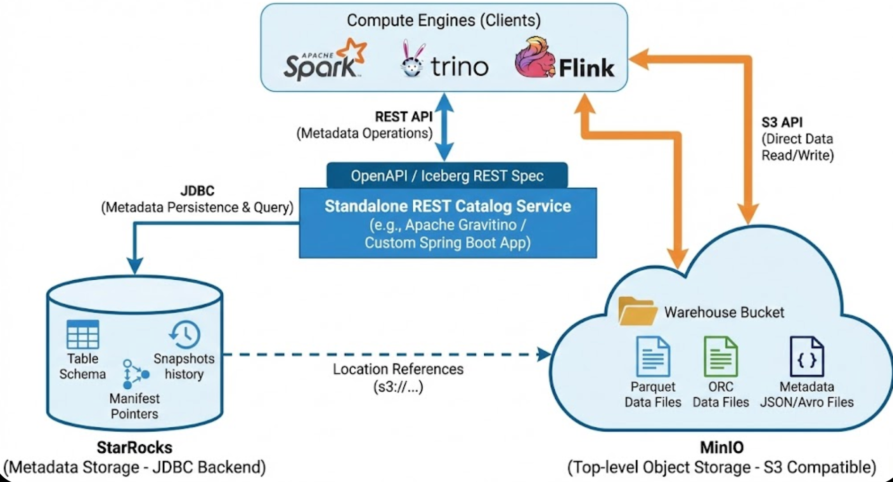 Apache Iceberg 是一个开源的表格式,用于大规模数据湖,提供 ACID 事务、模式演化、时间旅行等功能。REST Catalog 是 Iceberg