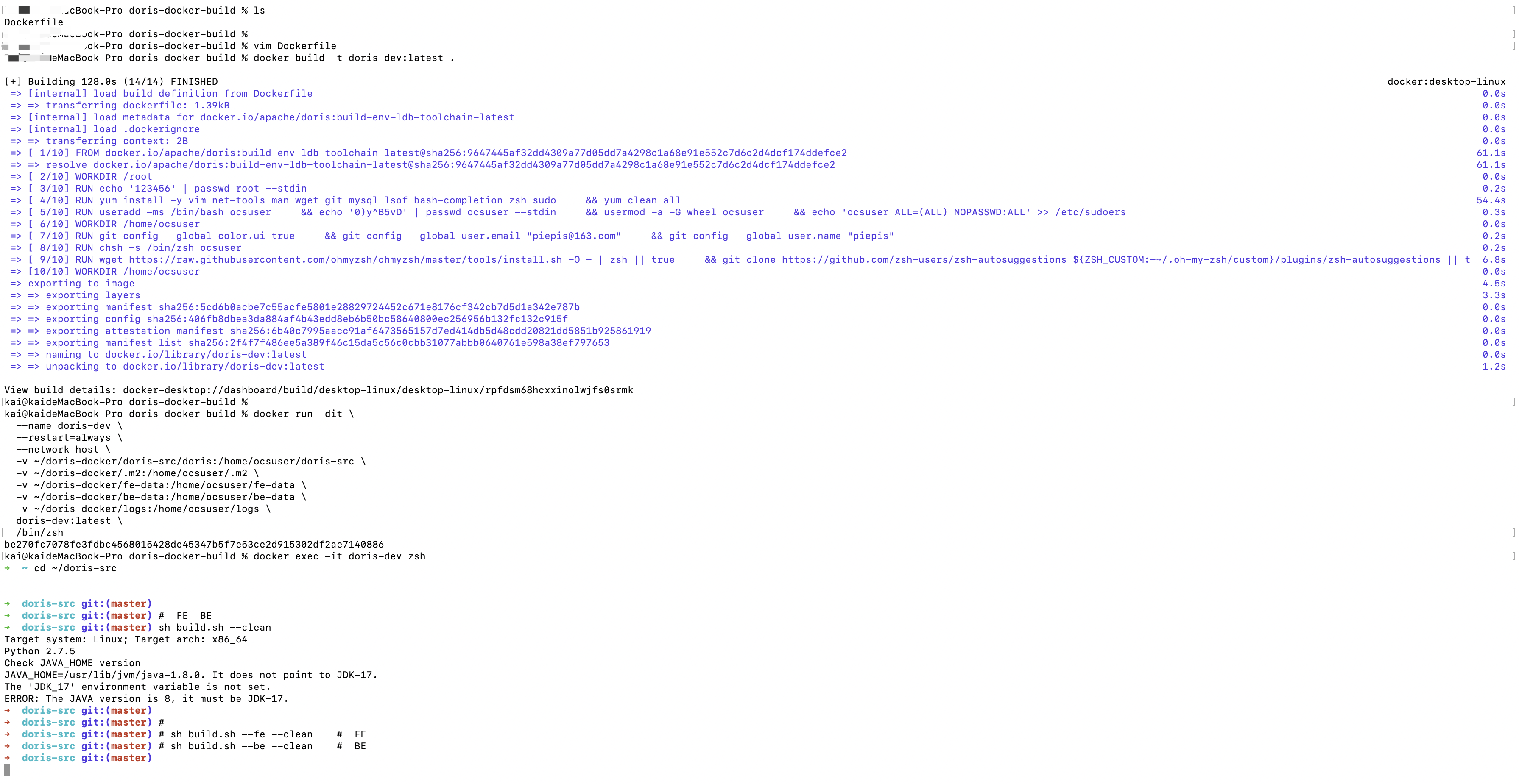 Doris Docker 完整部署指南 目前在网上没找到一个好用的doris 本地安装教程,参考官网的教程,写了一docker版本,基于mac版本
