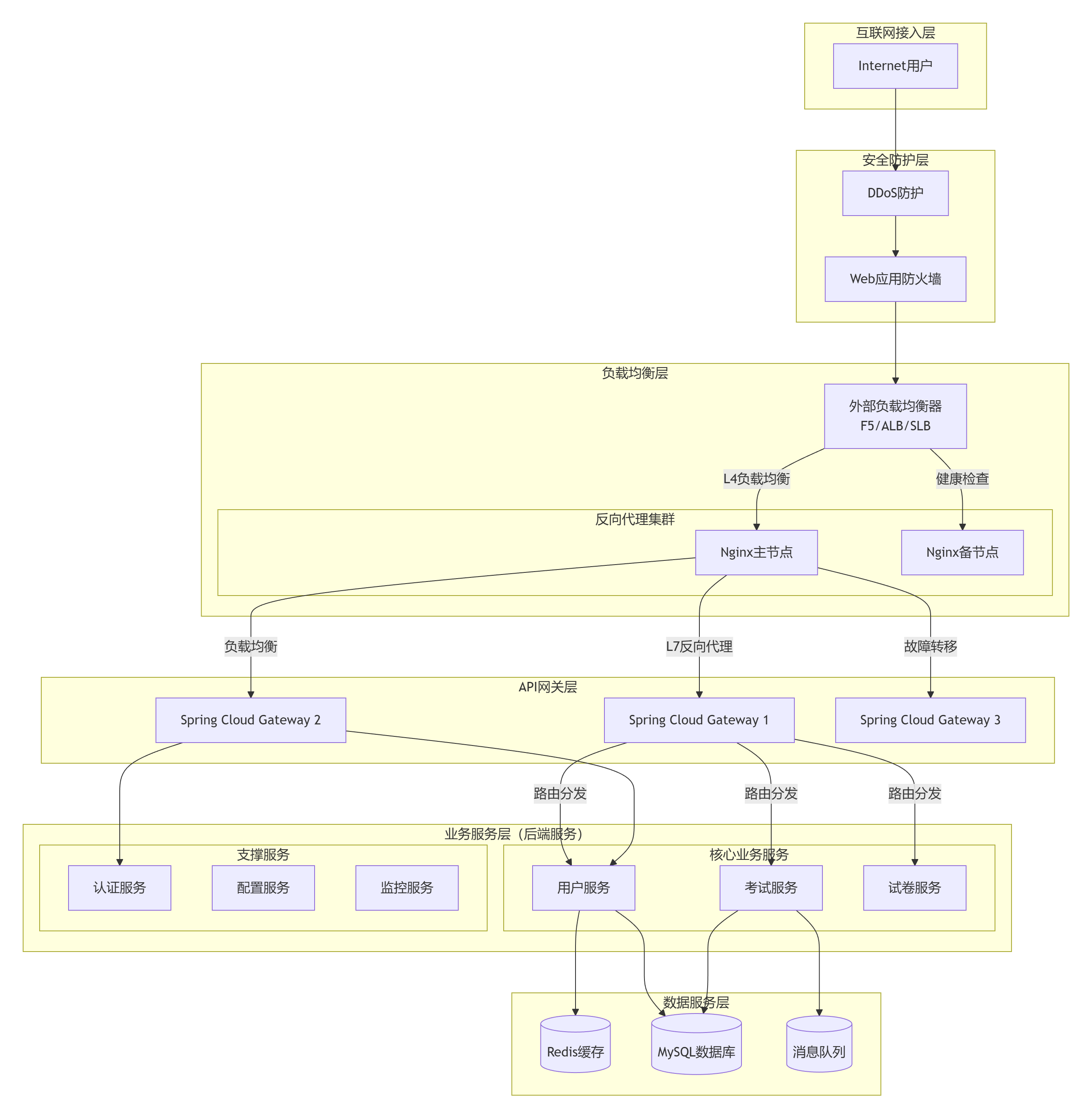 企业级教育考试系统核心架构(完善版)一、企业级完整架构图#mermaid-svg-xUGAa7UvrYAfXD7c{font-family:"trebuchet ms",ver