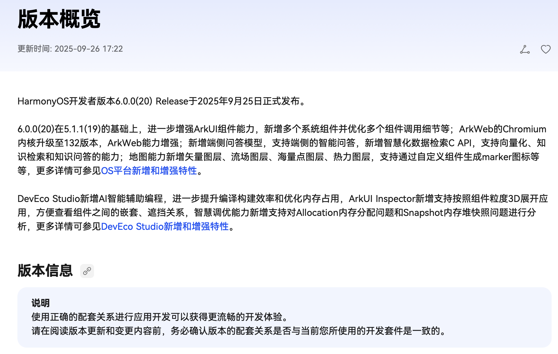 HarmonyOS开发者版本6.0.0(API 20)Release(鸿蒙6) 在2025年9月25日正式发布。相对于HarmonyOS 5.0版本增加了多项新能力及